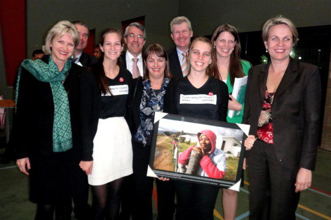Fremantle MP, Melissa Parke, together with Attorney General, Nicola Roxon; Minister for Employment, Kate Ellis; Minister for Health, Tanya Plibersek; Minister for Broadband, and Deputy Leader of the Government in the Senate Stephen Conroy; Minister for Environment, Tony Burke, and Parliamentary Secretary for Climate Change, Mark Dreyfus stood in solidarity with Make Poverty History supporters Kathryn Richards and Nanwen Sounness to show their support for the campaign. Kathryn Richards and Nanwen Sounness are the President and Vice President of the Oxfam UWA group and have recently raise $8 000 this year for the West Africa Food Crisis Appeal.