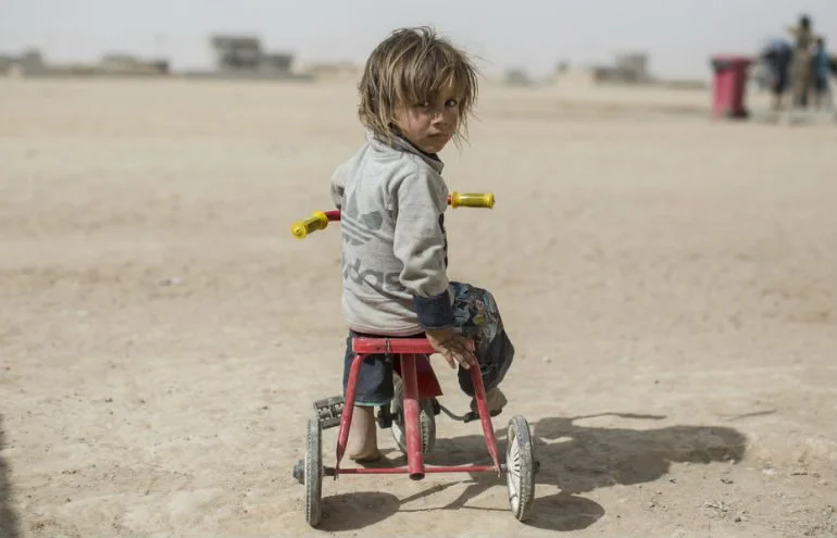 Jasm is two years old. His family also lived in the village of Imam Gharbi. When the Coalition military retook the village in August, their house was destroyed by shelling. The family fled the fighting and are now living a few kilometres away in the camp in the village of Tinah.