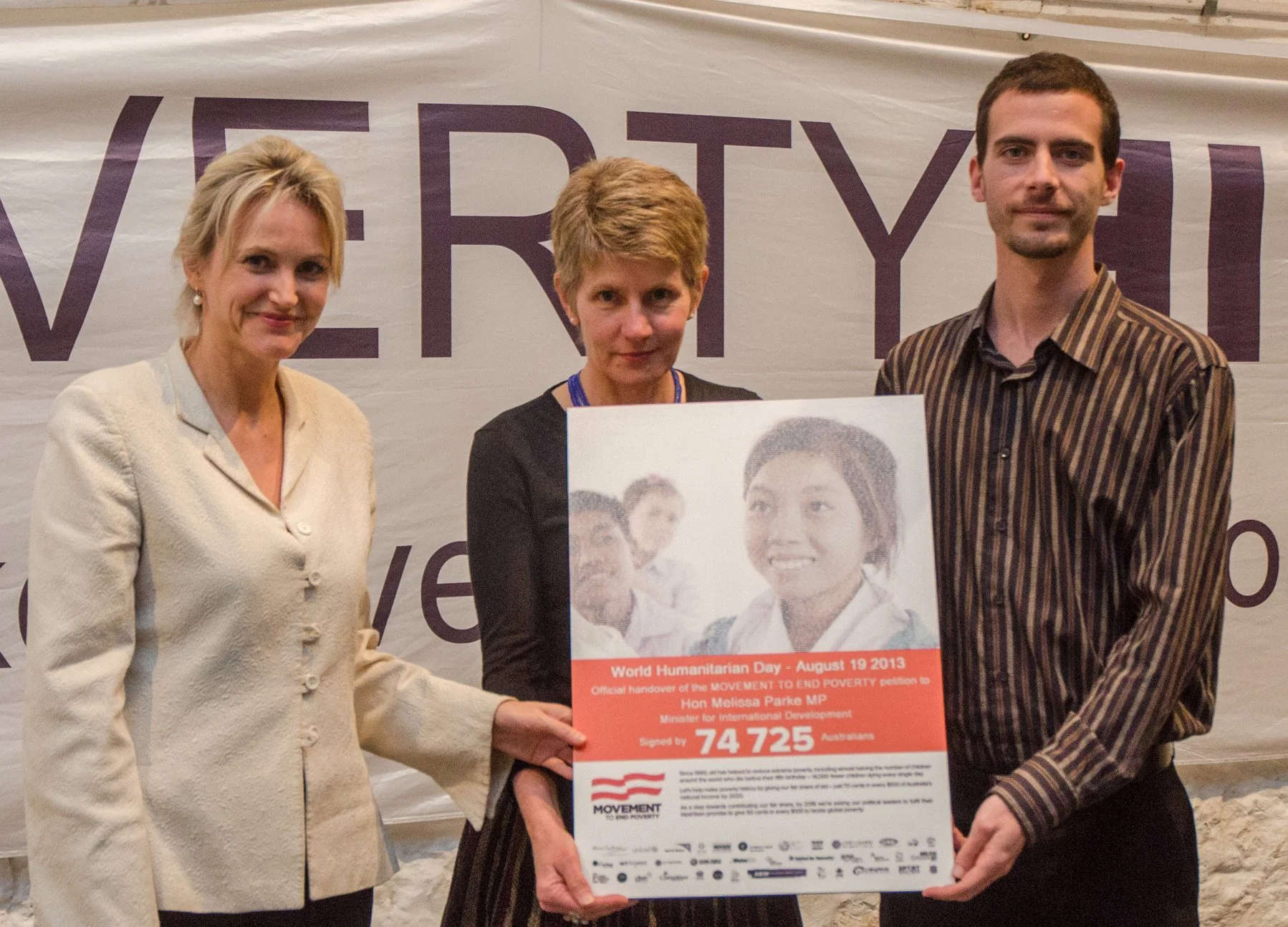 74,000+ Strong Movement to End Poverty petition handed to Minister for International Development Melissa Parke. On World Humanitarian Day (Monday 19 August), Oxfam Australia’s Board Chair, Dr Jane Hutchison and Oaktree WA State Director, Simon Bunstead handed over the Movement to End Poverty petition, signed by 74,725 people, to the Minister for International Development, Melissa […] Read more »