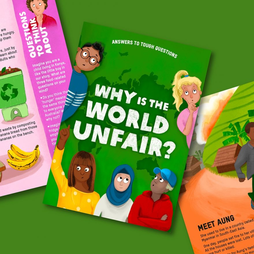 Explaining topics like inequality to children can be tough. That’s why we developed ‘Why is the world unfair?’, an educational children’s book to help answer questions about war, hunger, refugees and extreme drought. It’ll help your little person grow and feel empowered to make a difference, too!