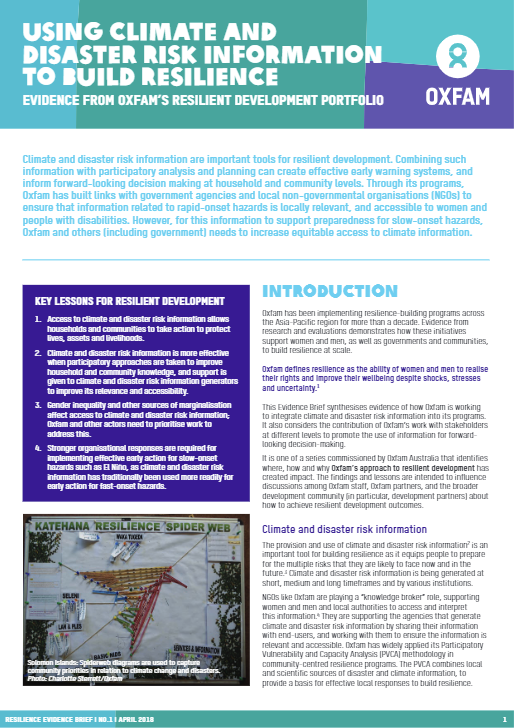 DownloadOxfam’s Resilient Development Portfolio: Using climate and disaster RISK information to build resilience, 2018